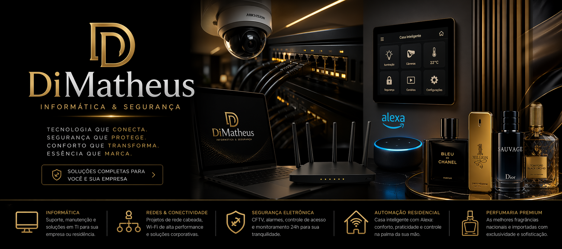 A DiMatheus Informática & Segurança reúne soluções para empresas e residências com atendimento rápido, presença profissional e uma loja virtual elegante pronta para gerar oportunidades.